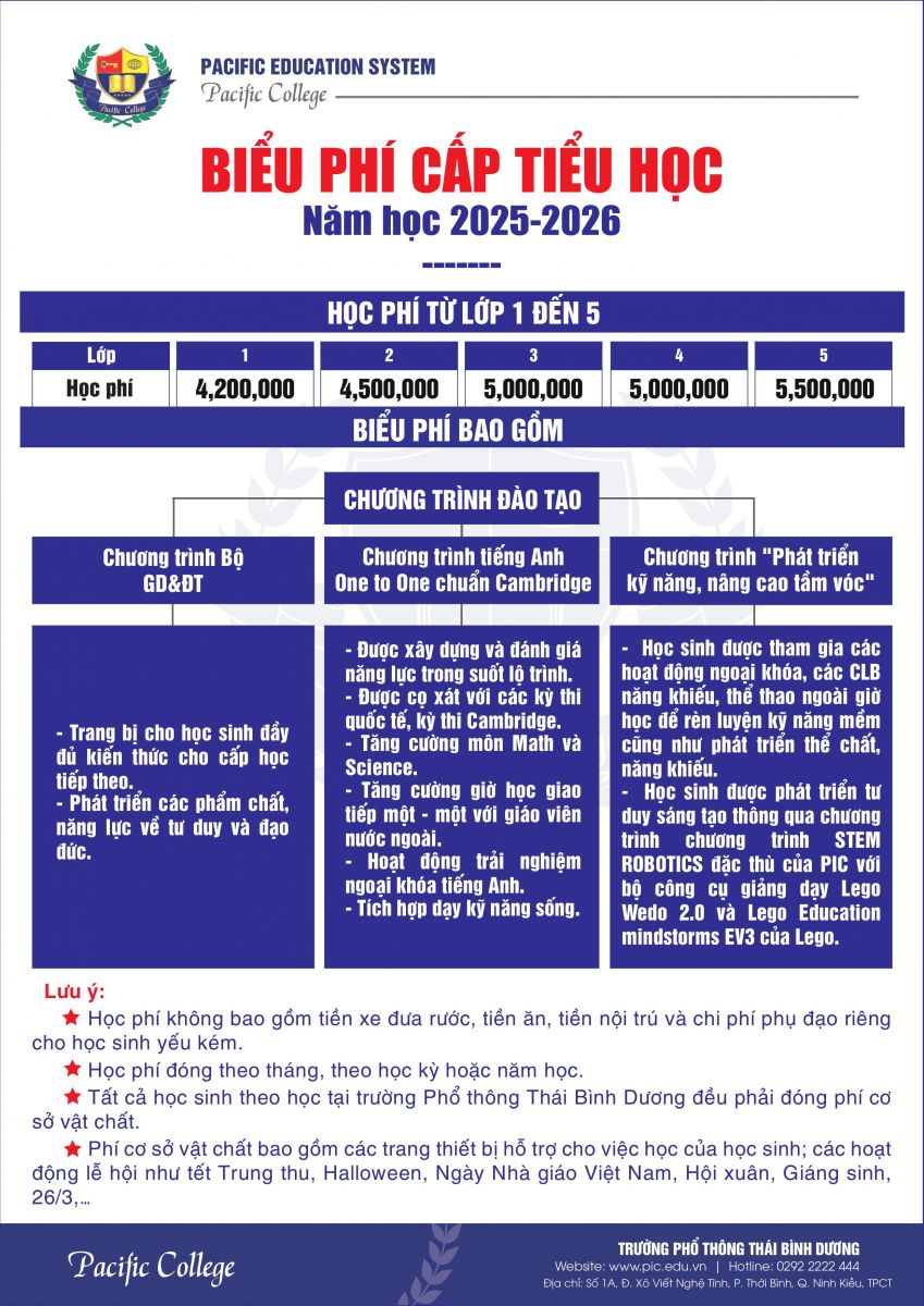 BIỂU PHÍ CẤP TIỂU HỌC NĂM HỌC 2025 - 2026