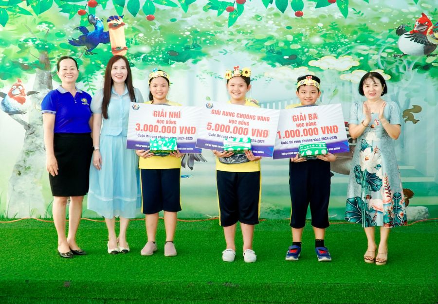 Cuộc thi Rung Chuông Vàng diễn ra sôi nổi bằng tiếng Anh: Học sinh trả lời nhanh các câu hỏi về công nghệ, khoa học và đời sống, thể hiện khả năng tư duy nhạy bén, vốn từ vựng phong phú cùng sự tự tin trong giao tiếp ngoại ngữ.