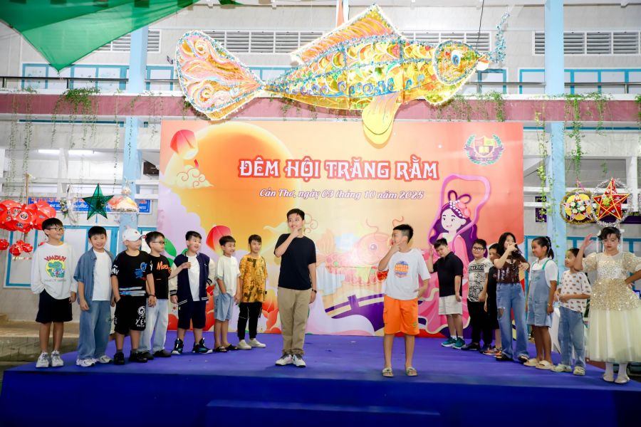 Ngay tại sân trường các em được đã tham gia nhiều hoạt động ngập tràn sắc màu của đèn lồng, múa lân và những tiết mục văn nghệ ấn tượng từ các học sinh.