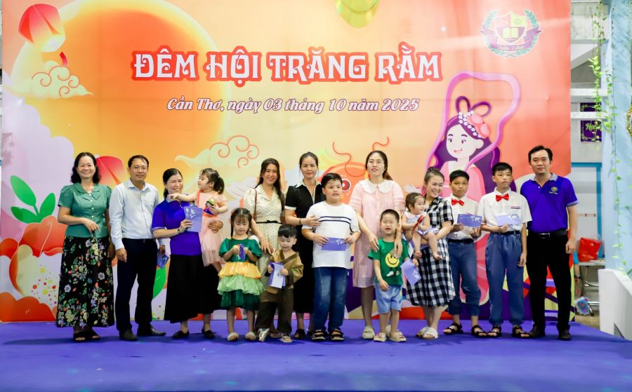 Nhà trường cũng trao những phần quà Trung thu gửi tặng con em nhân viên như một lời động viên, khích lệ các em chăm ngoan, học giỏi.