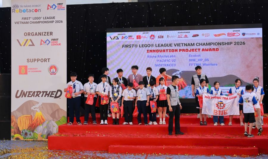 Trong các ngày 27, 28, 29/3 vừa qua, đội tuyển STEM Robotics của nhà trường đã tham gia và ghi dấu ấn nổi bật tại FIRST LEGO LEAGUE VIETNAM CHAMPIONSHIP 2026. Mùa giải năm nay với sự tham dự của 144 đội tuyển học sinh đến từ 7 quốc gia, bao gồm: Nhật Bản, Thái Lan, Philippines, Đài Loan, Malaysia, Hong Kong và Việt Nam.